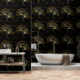 Gouden Lotus met een zwarte achtergrond en een elegant eenvoudig ontwerp