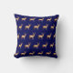 Golden rendiersilhouette op blauw Sierkussen van de marine.