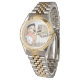 Dit horloge heeft een gouden retriever die verkleed is als kunstenaar, een baret draagt en een penseel en palet vasthoudt. Hij schildert een prachtig schilderij.