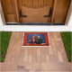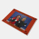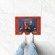 Deze deurmat is voorzien van een gouden loopbaan als Victoriaans kerstCarolers. De boodschap luidt: "Wij wensen u een prettig kerstfeest".