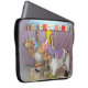 Deze laptophoes is voorzien van gouden rekwisieten die zijn gekleed als carrouselpaarden op een carrousel.