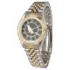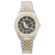 Een glanzend gouden silhouet Golden Retriever Dog is het kenmerk in het centrum van dit elegante horloge. Het afbeelding van de hond wordt omlijst door het aanpassen van gouden Romeinse cijfers, en geplaatst op een dramatische zwarte achtergrond. Perfect voor iedereen die van een Golden houdt, en vooral voor iemand in de Dog Show wereld.
