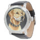 Gestileerde vectorillustratie van een golden retriever met een zwarte leren kraag tegen een donkere achtergrond. Het afbeelding portretteert loyaliteit en elegantie, geschikt voor verschillende decor-, ontwerp- of dierenprojecten.