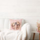 Two beautiful Golden Retriever dogs nuzzle each other on this adorable pillow. The dog images are placed on a faded pale pink gingham check pattern background. Both sides of the pillow have the same image. A cute gift for anyone who loves Golden Retriever dogs.