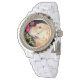 Dit horloge is voorzien van een gouden rekwieg die rozen in de tuin snuffelt.