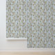 Wit en blauw-groen koninklijke pauw bruiloft fantasie landschap in een tropische tempel omgeven door groen met moderne gouden veren juweel decor. Kleurenpalet van goud, wit en groen met elegant gedraaide stijlvolle glanzende grafische cerulean blauw gouden pauwenveren en witte bloemen.
