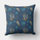 Golden Starfish & Coral Reef Patroon op Blauw Kussen