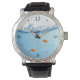 Cool and funny goldfish swimming underwater in a vals fishbowl aquarium. A fun and fake look that is sure to turn heads. Great for the aquatic fish animal enthusiast in coconto of orange and light blue with fresh splashing water along the top
