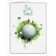 Moderne illustratie met golf als thema. Een golfbal vertegenwoordigt de Aarde met golfers en vlaggen eromheen in groene tinten. Fun en modern design voor de golfgeliefde.