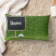 Golfbal met blanco karton op groen gras Lumbar Pillow