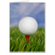 Sluit een golfbal op een rood t-shirt in groen gras.