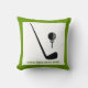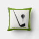 Golfclub en balzwart, groen gooi kussen met een minimalistisch icoon van een zwarte golfclub en balletje en jouw tekst op een witte achtergrond met groene rand. Dit moderne, minimalistische ontwerp is een perfect cadeau voor golfspelers - golfers - of gewoon golfliefhebbers in je leven. Bekijk veel design in onze Sports Gifts store.