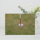 Golfgat op groen met een rode en witte vlag. Fotografie.