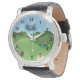Dit Golfhorloge beschikt over een golfbaan achtergrond met een zandval en golfvlag, een rode golfkar, een blauwe golfkar beide met golftassen. Decoratieve tekst is Golf. De volgnummers kunnen worden verwijderd, als u liever uw horloge zonder hen. Perfect cadeau voor de golfer in je leven. Kies de stijl en kleur van uw horloge! Dit ontwerp is gemaakt met originele artwork© www.delightful-doodles.com