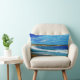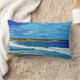 Op een aquablauw zee zijn golven afgebeeld die naar beneden drijven met heuvels die naar de oceaan stromen