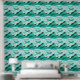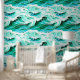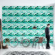 Ideaal voor elke strandinrichting; kustrestaurant; hotels aan zee; lodges; resorts en chalets, deze turquoise en bleek blauw gemengd met zwart-witte muurschildering heeft horizontale golvende oceaangolven in Japanse stijl. Breng het strand binnen, met dit moderne, eigentijdse en elegante naadloze patroon dat gemakkelijk te pellen is en aan zowel gladde als gestructureerde muren kleeft.