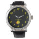 Je kunt mijn tekening van een slaapzon bestellen die op een kussen ligt, tekst: "Ik zie je 's ochtends." Deze schattige tekening maakt het perfecte geschenk voor elke gelegenheid of geschenk om dat iemand een goede nachtelijke groet te wensen. Nu kun je mijn tekening bestellen die ik noem: "Good Night Sun", toegevoegd aan het zwarte lederen horloge van dit man.