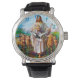 Jezus Good Shepherd vierkant, heeft Jezus met zijn schapen die in een veld lopen terwijl ze allemaal naar hem kijken. Met een lichtblauwe hemel en groen gras achter hen. Hij heeft een witte outfit om een baby schaap vast te houden. Dit is een foto van begin 1900. Deze klok heeft bruine houtnummers van 1 tot 12.Bruin lijst en de lichtblauwe achtergrond. De achtergrondkleur kan in om het even welke kleur veranderen u wilt het met het douane label zijn.John 10:7-21 I ben de Goede Schadder