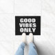 "Good Vibes Only" inspirerend aanhalingsteken deurmat voor voordeur. Zwart-wit 18x24 ingangsdeken voor binnenhal manier of openluchtveranda. Grote letter typografie ontwerp. Grappig motivatie gezegde voor positieve energie. Schattige cadeau-idee voor nieuw huis, housewarming party, trouwlocatie, winkel, winkel, bedrijf kantoor, bedrijf etc. kleur achtergrond en tekst. Aangepaste welkomstdeurmatten beschikbaar in klein en groot formaat. huisinrichting / decoraties voor uw huis. Leuk cadeau idee voor paar of nieuw huwelijk.