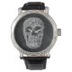 Gotische grunge zwart-witte schedel spooky unieke mannen Cool, trendy, modern, eng, cool, op maat gedrukt Halloween-ontwerp. Afbeelding copyright Marg Seregelyi Fotografie.