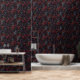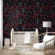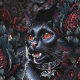 Gothic Black Cat & Dark Flowers Pattern Behang