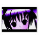 Deze coole kaart is voor u leeg gelaten zodat u deze kunt gebruiken voor een aantal verschillende soorten gelegenheden. De ogen van dit kleine Gothische meisje (of is het een pop?) kunnen net zo gemakkelijk uit een Manga-afbeelding worden genomen, zodat het nuttig is voor een breder publiek. Ik hou van de paarse en zwarte combinatie op deze kaart.