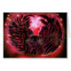Kaart met Gothic Fairy Cat van Michaeline McDonald van een zwarte kat met grote vedervleugels die een hartvorm vormen rond een volle roze maan. copyright Kunstwerk © 2004 Michaeline McDonald.