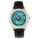Dit surrealistisch horlogeontwerp heeft een gothisch ijzerwerk klokgezicht alhoewel je een gloeiend interieur kunt zien met tandwielen en tandwielen. Verdiep je innerlijke gothic of gekke wetenschapper elke keer als je dit zakhorloge opent dat dient als venster voor een geheime wereld van je verbeelding.