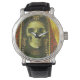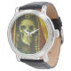 Dit horloge is geïllustreerd met decoratieve gothische skeletwitch. Foto van de surrealistische kunstenaar Michael Thomas.