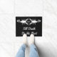 Deze geweldige deurmat is voorzien van een digitaal afbeelding van een paar prachtige witte schorpioenen die naar elkaar gericht zijn. Elke schorpioen is wit en heeft acht poten, een giftige steek en een paar tang. De knijpers worden bij elkaar gehouden om de vorm van een hart te vormen. De achtergrond is zwart. Een prachtig gotisch trouwontwerp. Er is aangepaste tekst, zodat u de initialen van het gelukkige paar en een bericht kunt opnemen.