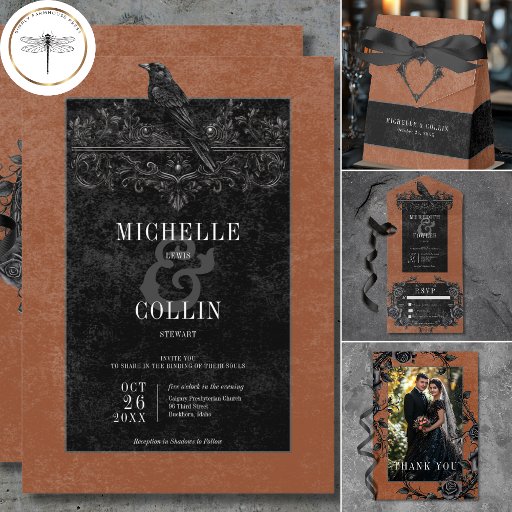 Gothic Black Raven & Black Roses Rust WeddingOntworpen door Kathe Santillo