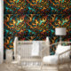 Goud Blauwgroen en Sinaasappel Abstracte kunst, Behang