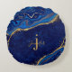 Goud en blauw Modern Elegant Custom Name Monogram Rond Kussen
