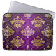 Elegant gouden florale damaspatroon op een paarse achtergrond.