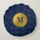 Goud & Marine Blauw Zodiac Constellations Monogram Rond Kussen