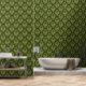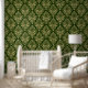 Goud op Rich Donkergroen Klassiek Damast Patroon Behang