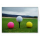 gele roze en witte, heldere Golfballen op een golfbaan in de bergen Foto van Sandy Closs, genomen op het Arrowidenmeer. Golf, golfer, golf, golf grof, veer, sporten, ooster, vakantie, "oostereieren" roze, golfers blauw geel
