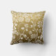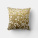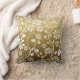 Goud, wit bloempatroon met witte debieten en bladeren gooien/gooien decoratieve kussens met een gouden brocadeffect onder het paisleypatroon. De brocade is slechts een vlak gedrukt afbeelding.