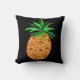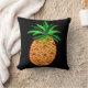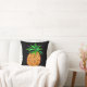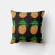 Tropisch gooi kussen heeft gouden ananassen op zwart. De ene kant heeft een betegeld ontwerp en de andere kant heeft een enkele grote ananas.