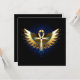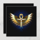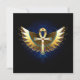 Gouden Egyptische ankh met patroon, glanzende vleugels op een zwarte achtergrond. Magisch symbool.