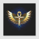 Gouden Egyptische ankh met gemodelleerde, glanzende vleugels op een zwarte achtergrond. Magisch symbool.