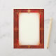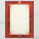 Een gouden art deco lijst op een gevlekte rode achtergrond maakt een elegant en stijlvol briefpapier. De achterkant is hetzelfde gebroken wit als het midden van de voorkant. Perfect voor correspondentie, flyers en uitnodigingen.