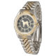 Een glanzend gouden silhouet Basenji Dog staat centraal in dit elegante horloge. Het afbeelding van de hond wordt omlijst door het aanpassen van gouden Romeinse cijfers, en geplaatst op een dramatische zwarte achtergrond. Perfect voor iedereen die van een Golden houdt, en vooral voor iemand in de Dog Show wereld.