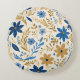 Gouden blauwe en witte bloemen rond kussen