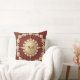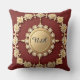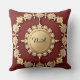 Een boeiende opstelling van ingewikkelde gouden bloempatronen die een cirkelvormige vorm vormen, prachtig weergegeven op een diep rode achtergrond, perfect voor thema's van luxe, design en elegantie.