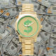 Maak een krachtige statement met onze unisex extra grote gouden armbandhorloge, met een opvallend groen dollarsymboolontwerp tegen een slanke gouden achtergrond. Dit opvallende tijdstuk straalt luxe en zelfvertrouwen uit, perfect voor degenen die een combinatie van weelde en stijl waarderen. De extra grote gouden armband voegt een vleugje grandeur toe, waardoor je je in elke menigte onderscheidt. Met precisie en aandacht voor detail vervaardigd, biedt dit horloge zowel duurzaamheid als comfort. Ideaal voor zowel formele evenementen als dagelijks dragen, dient het groene dollarsymboolontwerp als een herinnering aan voorspoed en succes. Verhef je accessoirecollectie met dit unieke en luxueuze horloge dat veel zegt over je smaak en persoonlijkheid.