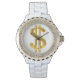 Gouden dollarteken op witte achtergrond dameshorloge van ab Martin Digital.