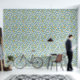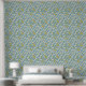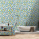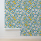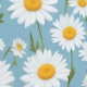 Een vrolijk bloemenpatroon met witte en gele madeliefjes verspreid over een zachte hemelsblauwe achtergrond. De delicate groene stengels en bladeren voegen een frisse, natuurlijke touch toe, waardoor een lichte en opbeurende lentevibe ontstaat. Perfect voor stof, behang of briefpapier.