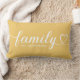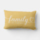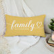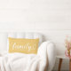 Een gepersonaliseerd gouden gele lendenkussen met Familie in vloeiend wit hartlettertype met een aanpasbare achternaam monogram. Het wit-op-gouden-gele ontwerp voegt een warme, vrolijke accent toe aan woonkamers, slaapkamers of halletjes. Alle tekst is volledig bewerkbaar om te personaliseren met uw familienaam. Een betekenisvol geschenk voor een huis dat nieuw is of een familiebijeenkomst.