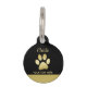 Gouden glanzende hondenpoot op zwarte achtergrond huisdierpenning
